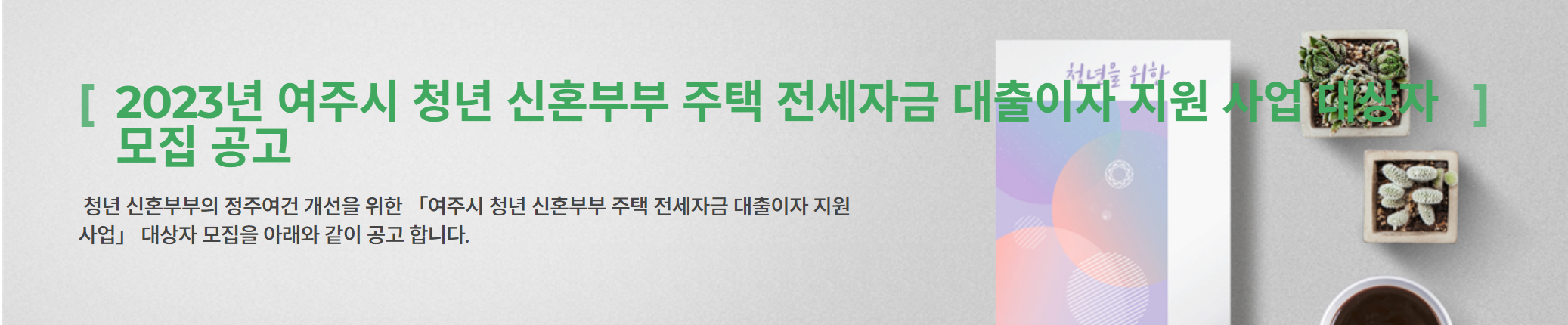 2023년 여주시에서 청년 및 신혼부부에게 주택 전세자금 대출이자를 지원해준다고 합니다. 연간 최대 200만 원까지 지원한다고 합니다. 해당되시는 분들은 서둘러서 신청하시기 바랍니다.