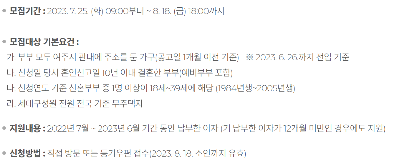 부부모두 여주시 관내에 주소를 둔 가구(공고일 1개월 이전 기준) - 2023년 6. 26까지 전입 기준으로 합니다.